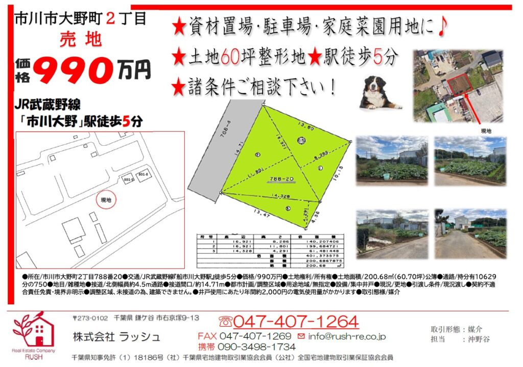 市川市大野町2丁目 駅徒歩5分 売地 60坪 販売開始致しました!