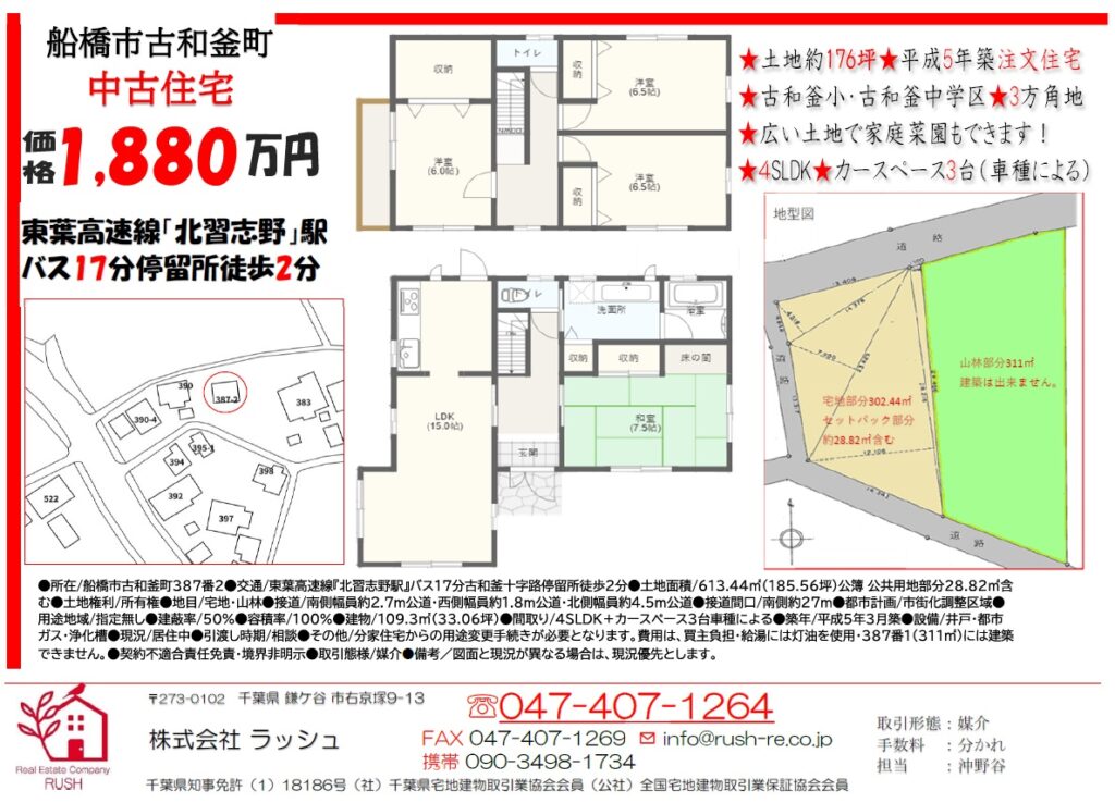 2025.10.30 船橋市 古和釜町 中古住宅 価格変更しました♪ 平成5年築 土地176坪 3方角地 広いお庭♪ 土地広々176坪 3方角地 広いお庭でガーデニング♪ 船橋市 古和釜町 中古住宅 販売開始致しました! 平成5年築 カースペース3台